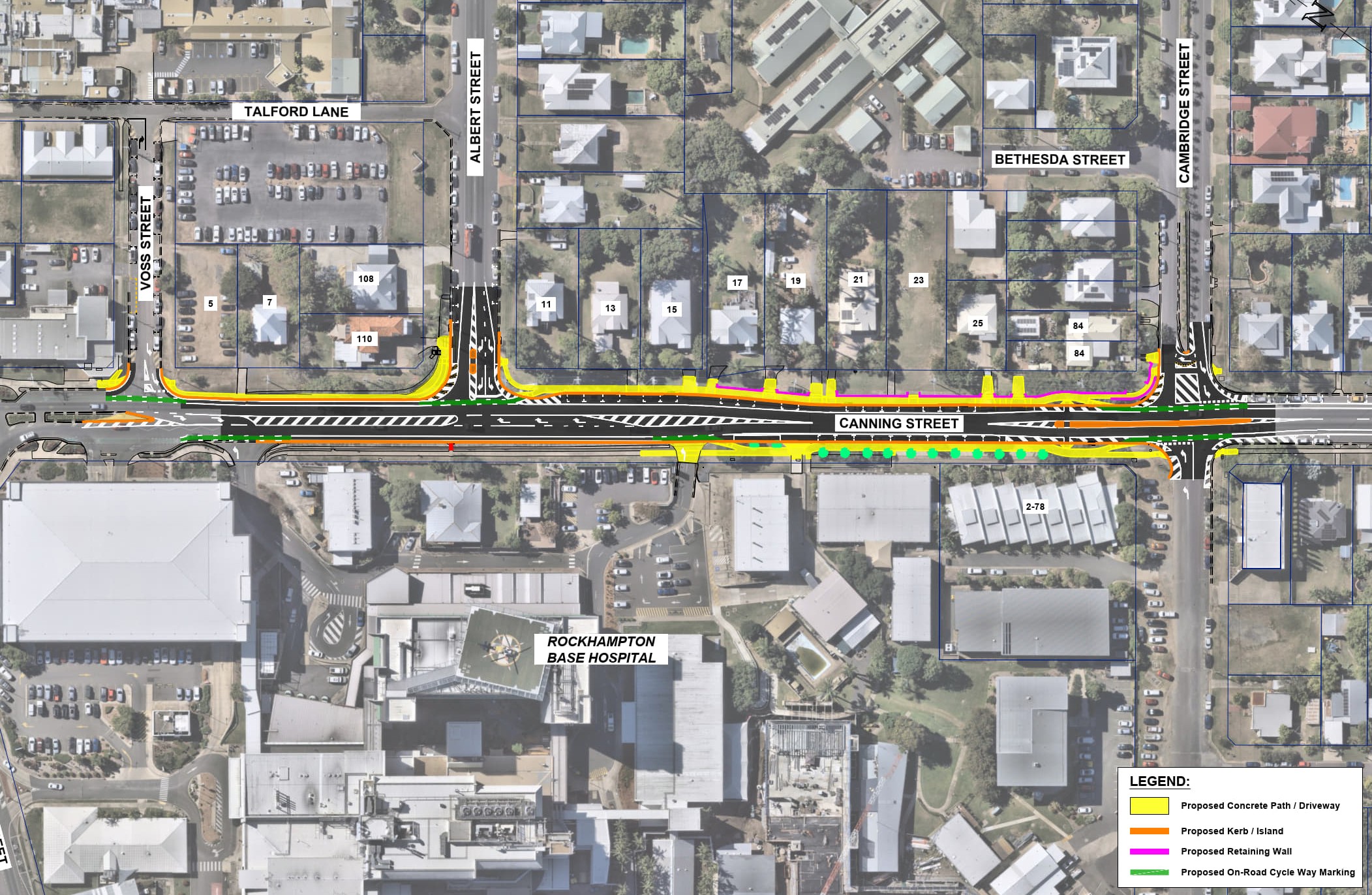 Rockhampton Regional Council is undertaking reconstruction works on Canning Street, from Voss Street to Cambridge Street, to improve safety, road quality, and pedestrian access in the area.